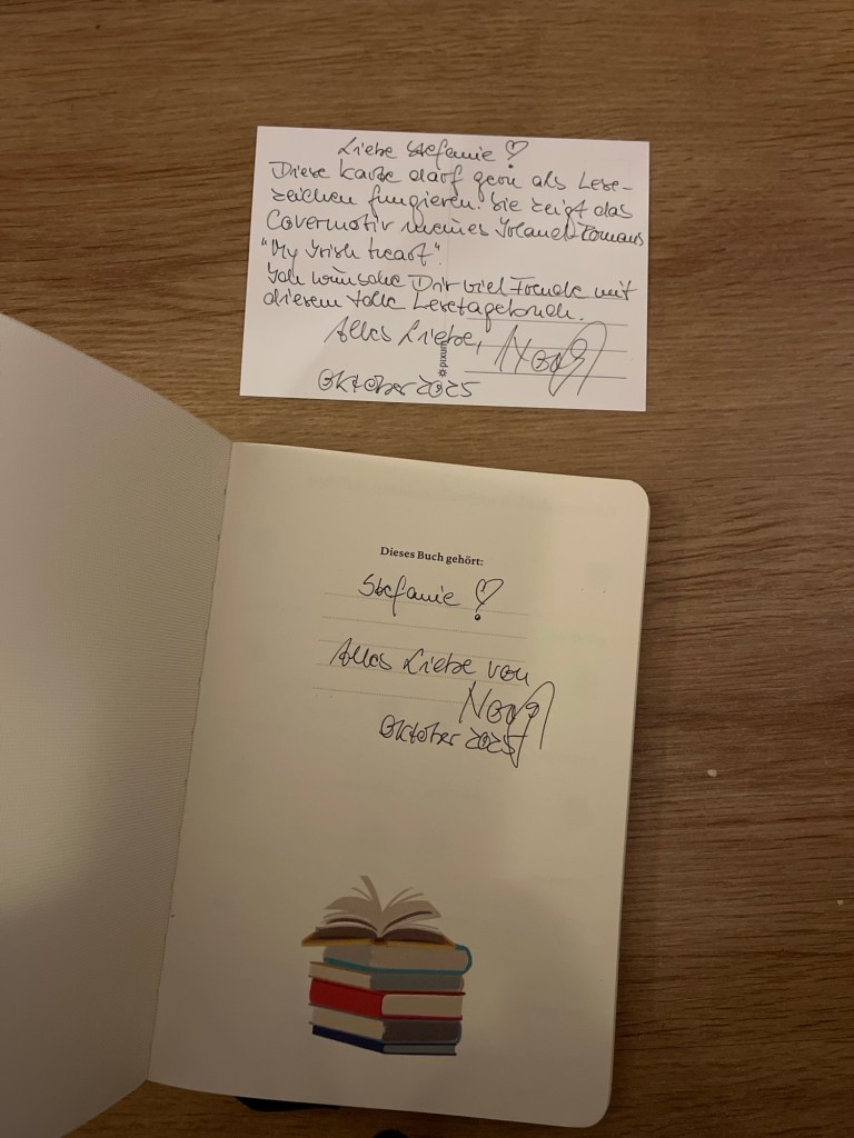 Dieses tolle Lesetagebuch habe ich mit der Rezension zu „Wie die Wellen auf dem Meer“ ( https://dieschreibwerkstatt.blog/2025/10/16/wie-die-wellen-auf-dem-meer/ ) gewonnen. Ich kann das Buch nur empfehlen.
