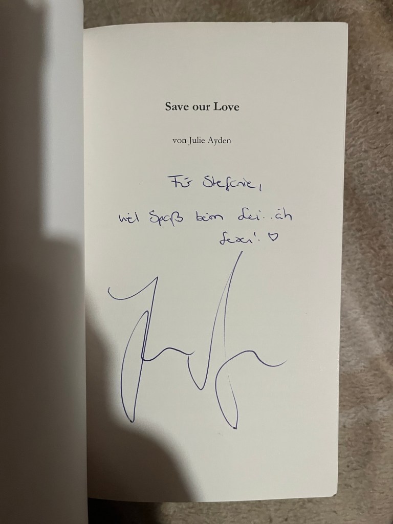 Auf der Parchimer Buchmesse 2025 hatte ich das Glück, die nette Autorin Julie Ayden kennenzulernen und da ich gerade die Potsdam-Triologie begonnen habe, nutze ich die Chance mir nicht nur Band 2 und 3 zu sichern, sondern auch eine Widmung in allen drei Bänden. Hier nun die Widmung in Teil 3.