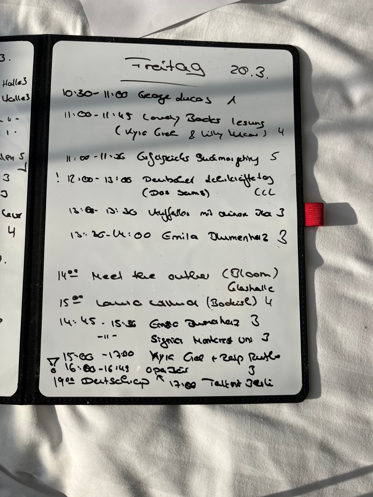 Dieser Tag startete dank @lovelybooks mit Kyra Groh und Lilly Lucas, die beide über ihre neuen Bücher und das Schreiben an sich sprachen und endete mit der musikalischen Lesung von „Deutschrap“ mit Jan Wehn.