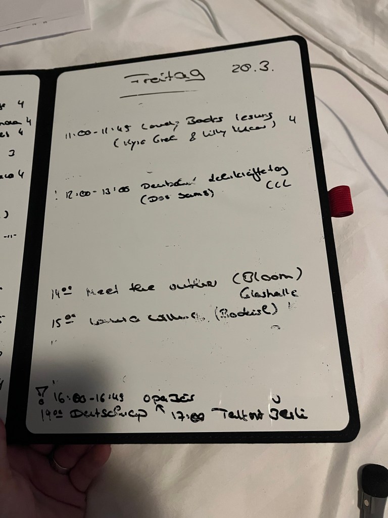 Hier wieder ein Plan von dem, was ich machen wollte vs. was ich davon gemacht habe. Zu den einzelnen „Stationen“ auf meiner Liste und den Sachen darüber hinaus werde ich noch weiter auf http://www.dieschreibwerkstatt.blog berichten.