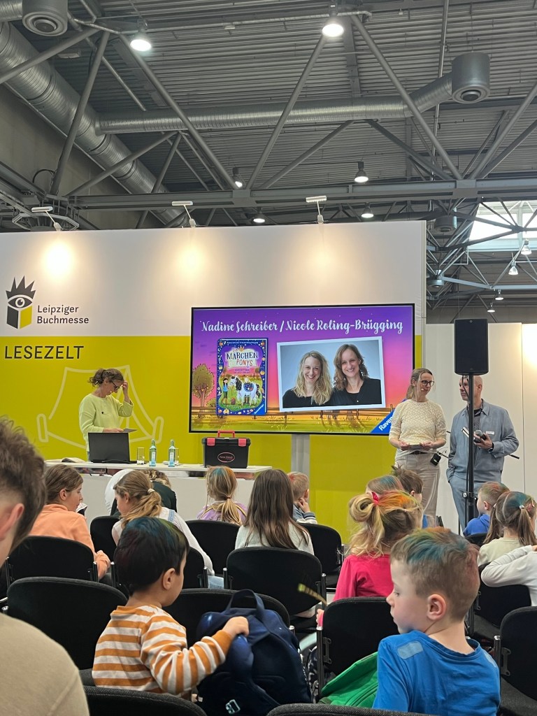 Nachdem ich mir einige Stände und Bücher auf der Leipziger Buchmesse angesehen hatte, ging es mit einer weiteren Kinderbuchlesung weiter. Ich habe bereits viel über das Buch gelesen und konnte es leider vorab nirgendwo erhalten, daher freute ich mich schon einmal auf die Lesung, um mehr als nur die Leseprobe zu kennen, bevor ich mir das Buch kaufen würde. Gelesen wurde von den Schwestern Nicole und Nadine, welche das Buch gemeinsam geschrieben haben.