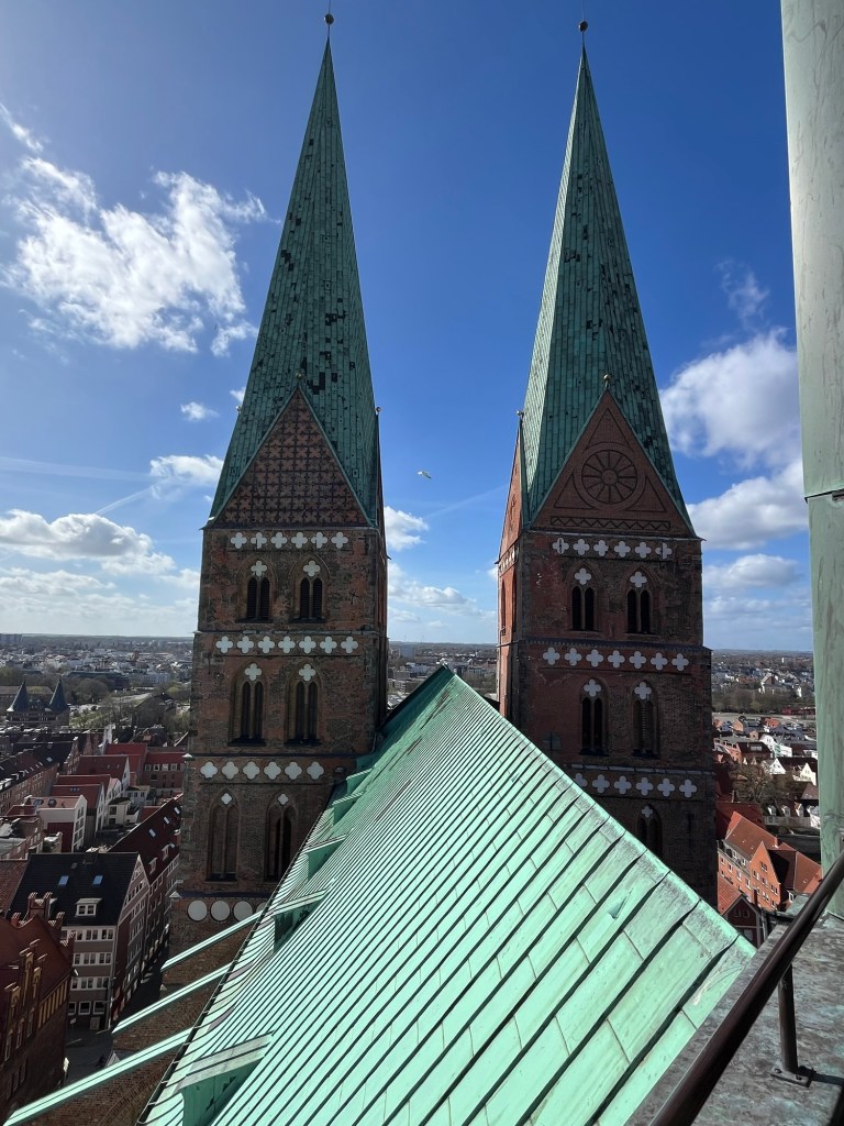 Nach einer kurzen Signiermöglichkeit ging es Richtung Marienkirche in die Türme, wo es nicht nur eine sehr interessante und fachkundige Führung gab, sondern auch eine Lesung, die genau dort spielt, wo wir gerade aufgestiegen sind.
