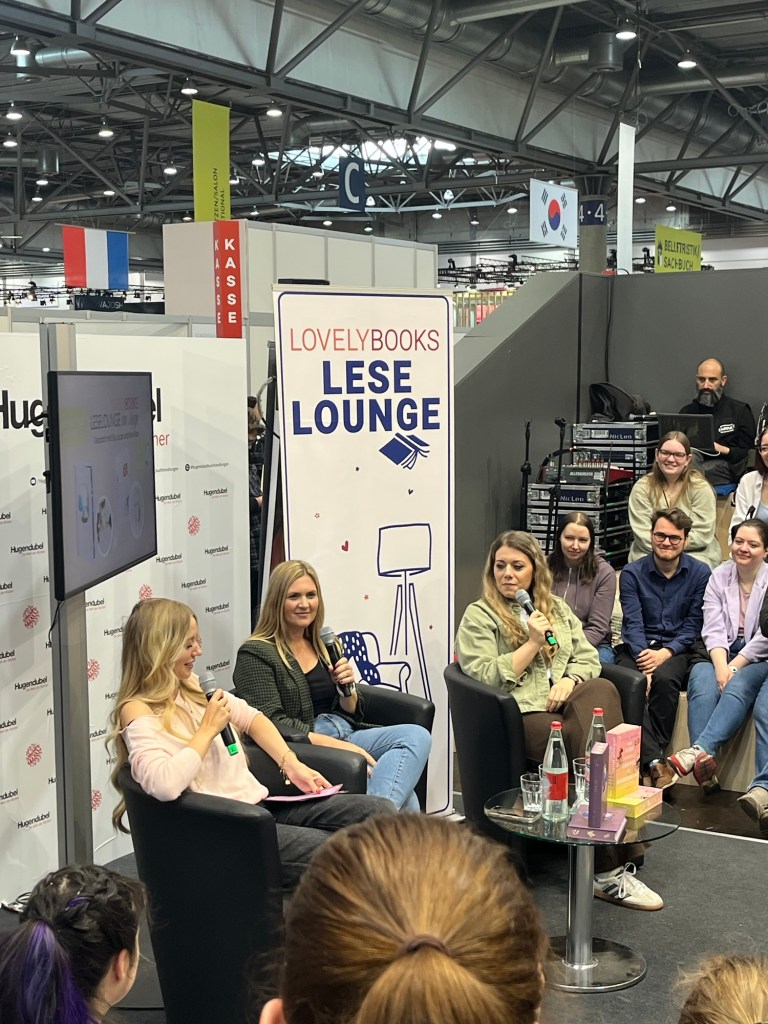 Eher zufällig konnte ich die Runde mit Kyra Groh und Lilly Lucas in der Leselounge von Lovleybooks genießen. Eigentlich wollte ich mir nur ein Buch in der Hugendubel Buchhandlung kaufen (ja, es wurden drei, dazu aber übermorgen mehr), doch da erfuhr ich, dass man auch ohne Karte die Möglichkeit bekommen könnte, an der Talkrunde teilzunehmen und so konnte ich mehr über Kyra und Lilly und ihre Bücher erfahren.