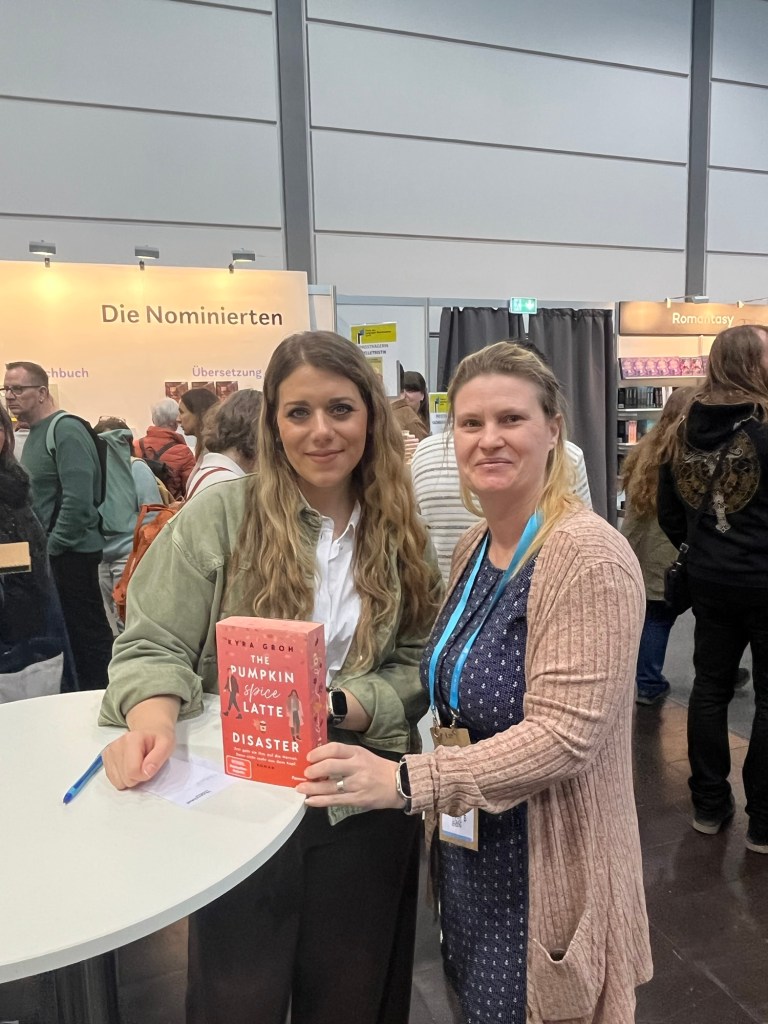 Am Ende erhielten alle noch die Möglichkeit sich eine Signatur von Kyra oder Lilly zu sichern. Da ich mir (mit Blick auf den Farbschnitt) das neue Buch von Kyra online bestellt hatte und es genau an diesem Tag zuhause zugestellt wurde, war ich froh, den ersten Teil (The Pumpkin Spice Latte Disaster) dabei zu haben. Da mich das Buch total begeistert hat, wollte ich es mir signieren lassen.