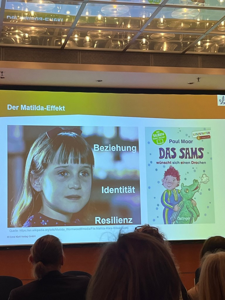 Leider war Paul Maar erkrankt, dennoch gab es ein spannender Vortrag mit Präsentation über Möglichkeiten, Kinder vom Lesen zu begeistern und auch über die unterschiedlichen Lesetypen. Natürlich gab es auch immer wieder Hinweise zum Sams und seiner Möglichkeit Kinder und Erwachsene in seinen Bann zu ziehen.