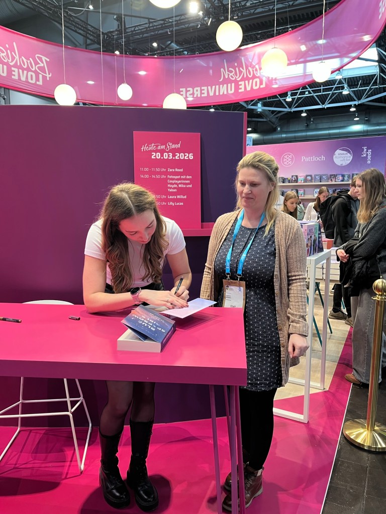Durch die vollen Hallen konnte ich mir noch rechtzeitig einen Weg bahnen, um nicht nur Bücher von Laura Willud bei Bookish zu kaufen, sondern sie auch gleich signieren zu lassen.